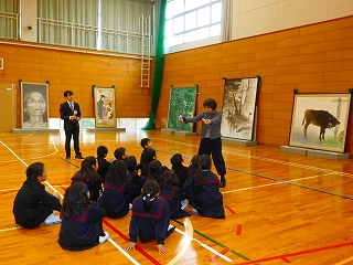 14日(火)に県立美術館から素晴らしい作品と学芸員の方が来て下さり、出前授業がありました。
