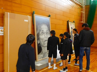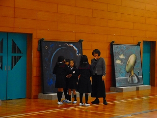 体育館のなかが美術館となり、迫力のある大きな作品をじっくりと鑑賞しました。