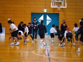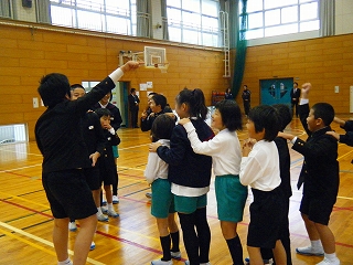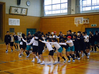 昼休みに全校で企画委員会が計画した遊びをしました。ボール送りでは、チーム毎に協力して上や下へと、速いこと、速いこと。じゃんけん列車では、気合いを入れたじゃんけんの勝敗に大きな歓声があがっていました。どんどん長い列車になってぐるぐる回っていくのも楽しそうでした。