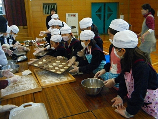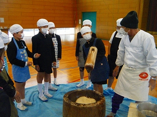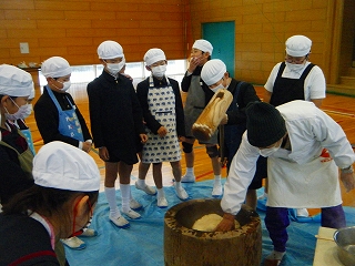 子どもたちは、重い杵をもちあげたり、きれいに餅を丸めたりするのに苦労していましたが,貴重な経験をすることができたようです。