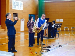 トランペットの西尾さんをはじめ、サキソフォンの山下さんご夫婦、ピアノの大友さんら4名の方が来校され、わたしたちに素晴らしい演奏を聞かせてくださいました。