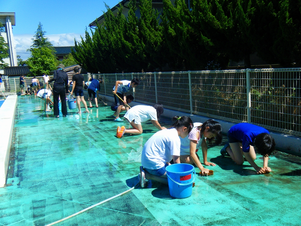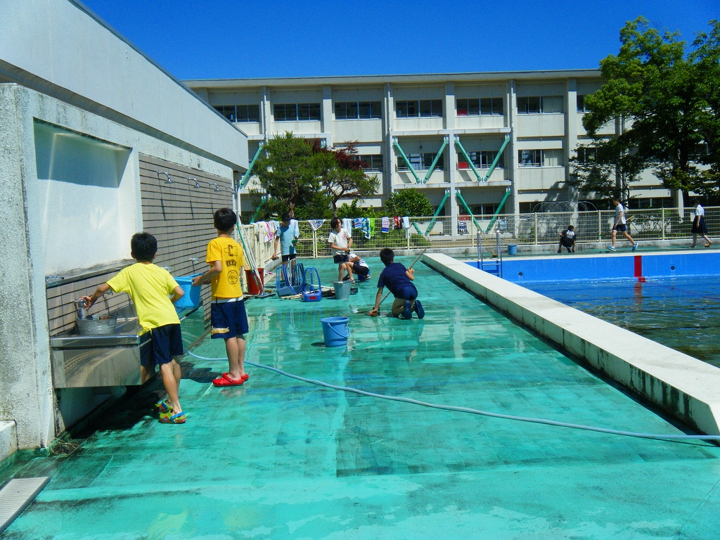 5・6年生が、黙々と、せっせとプールのあちらこちを磨き、きれいにしてくれました。下学年は来週のプール開きを楽しみにしています。ありがとう!