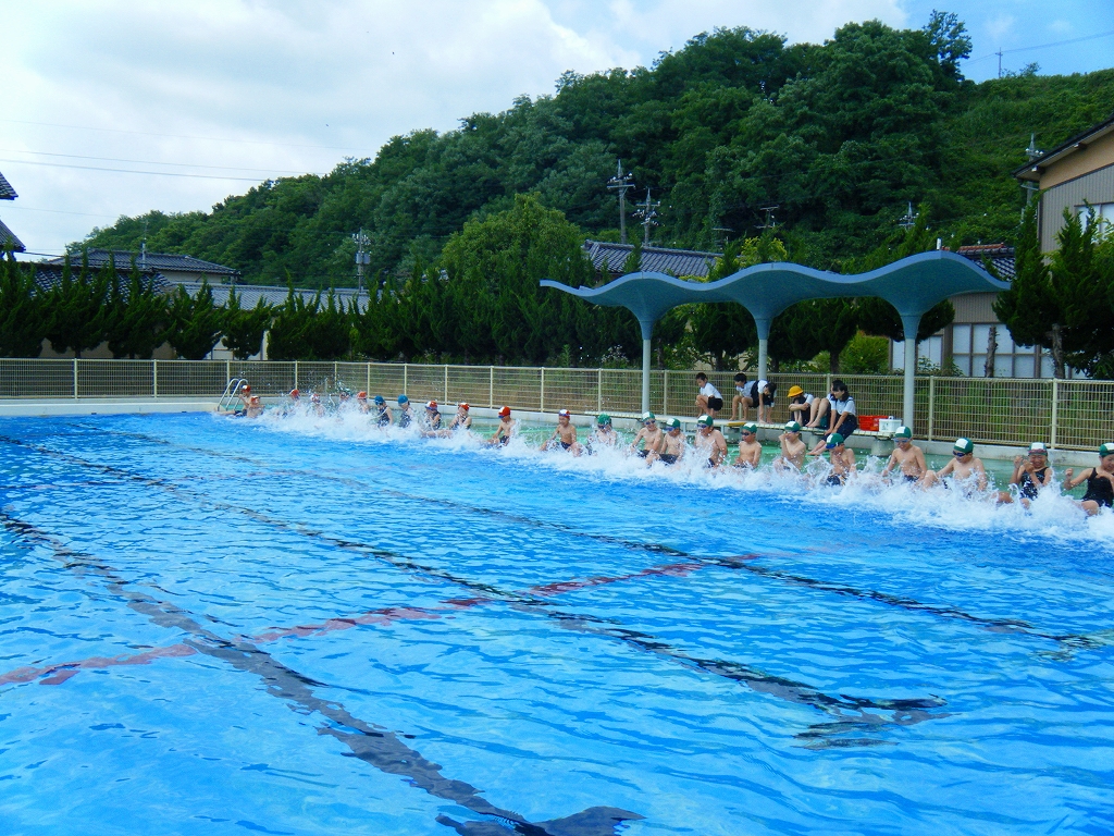 待ちに待ったプール開き。はじめに校長先生から、めあてをもって、安全にプールの学習をすることなどのお話があり、お塩とお酒をまいて安全を祈りました。その後、担任の先生から注意のお話があり、いよいよ入水。足でばしゃばしゃからはじめ、プール内歩き、流れるプールづくりなど、今日はまだ少し冷たい感じの水に慣れていきました。これからの季節、プールが楽しみ。たくさん泳いでくださいね。