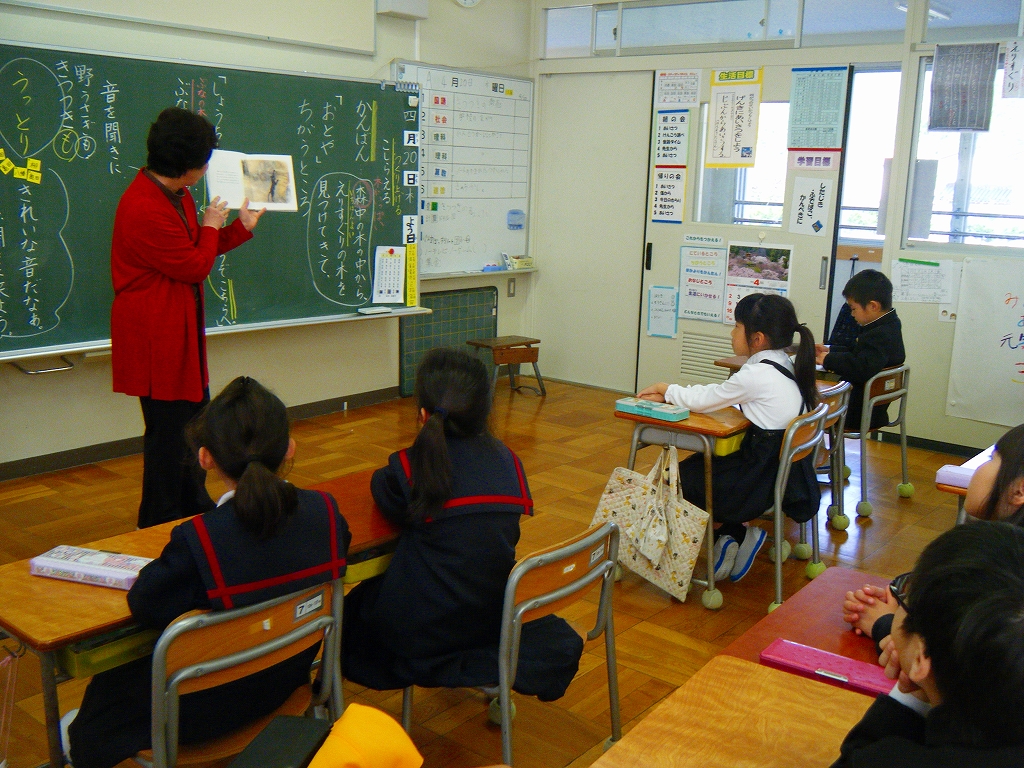 今朝の朝学習時間は、先生方の本の読み聞かせでした。子どもたちは生の声のもつ温かみやニュアンス、語り手の表情を巧みに感じ取り、想像を楽しんでいました。