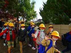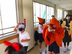 Let's go trick or treat(英語バージョン)を歌った後に、6年生が校内の各地に散らばり、ウォークラリーをしました。6年生が英語で好きな動物やフルーツを聞いたり、簡単なゲームをしてくれたりと、1~5年生はハロウィーンだけでなく、英語のやり取にも親しみました。