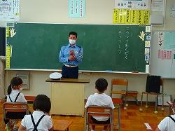 保健委員会は、熱中症にならないためにに水分補給の大切さについて発表してくれました。面白い小道具や文字カードで水分補給の大切さについて、楽しく教えてくれました。