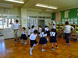 6月17日に1年生が初めての英語の授業を行いました。1年生にとっては、初めての活動でしたが、どの子も活動に集中して、楽しく生き生きと英語に親しんでいました。