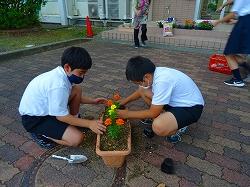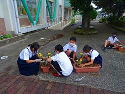 子どもたちは、一株一株大切に花を植えていました。植えられた花は児童玄関に飾ってあります。