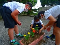 人権擁護委員の方に来ていただき、人権について分かりやすく教えてくださいました。その後、その方たちからいただいたマリーゴールドを子どもたちが植えました。