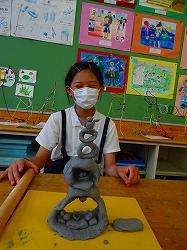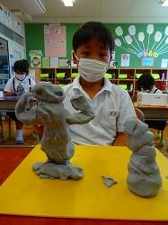 4年生が図工の時間に、「立ち上がれ粘土」として粘土で作品を作りました。子どもたちは、粘土がどうすれば自立するかを考えながら、作品を創り上げていました。試行錯誤を繰り返して、粘土が自立すると、子どもたちはとても嬉しそうにしていました。