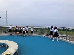 3年生は、社会の勉強で、展望台の上から町全体を見渡し、町の様子を調べました。