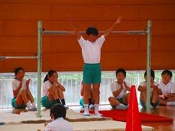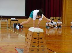 4年生は体育の時間に練習した、鉄棒や跳び箱の技を披露してくれました。新型コロナウィルスのため、器械運動交歓会が中止になってしまいましたが、4年生は全校の前で、鉄棒や跳び箱の技を披露することができ、とても満足そうにしていました。