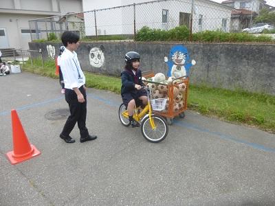 鶴ケ丘小学校と合同で交通安全教室を行いました。1年生は、「止まる・見る・まつ」を合言葉に右左右を見て横断歩道を渡る練習をしました。4年生はDVD視聴後、グランドで自転車に乗り、安全確認の仕方や注意事項を確認しました。