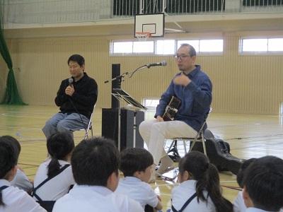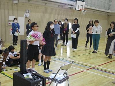 5/26日(月)韓国のゴスペルシンガー・ナムエンさんによるコンサートを行いました。平和と復興への思いを込めた歌声に、とても心穏やかな一時を過ごすことができました。子ども達はナムエンさんが話される韓国語や「アメイジング・グレース」を日本語・韓国語・英語で歌ってもらったことにも興味を惹かれたようです。また、ナムエンさんから全員に絵本「山のむこうの小さなもりで」(ナムエンさん作です!)をいただきました。ぜひお子様と一緒に読んでみてください。