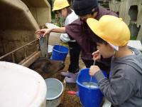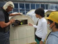また、仕事体験もさせていただきました。1・2年生は子牛の哺乳体験、3・4年生は搾乳体験、5・6年生は子牛の餌やり体験をしました。みんな真剣に取り組んでいました。