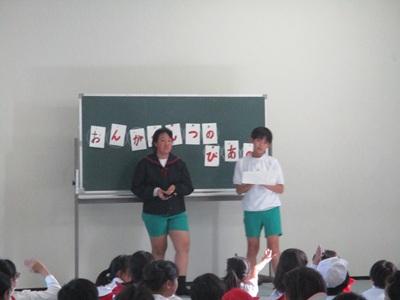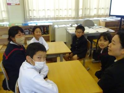 朝学習の時間になかよし斑のメンバーでトーキングタイムを行いました。文でしりとり自己紹介をしました。「アイスがすきなやま⚫⚫あす㋯」「㋯んなと遊ぶのが大好きなうえ⚫あき㋶」のようにしりとりでつないでいくゲームです。「新しいなかよし斑のメンバーのことがよく知れてよかった」「1~6年生みんなで話すのが楽しかった」という声が聞かれました。今後も月1回なかよし斑でトーキングタイムを行い、楽しみながら表現力をきたえていきたいと思っています。