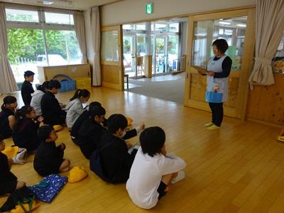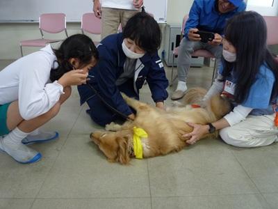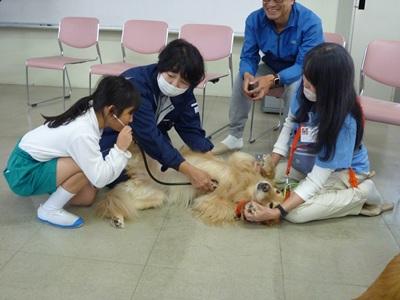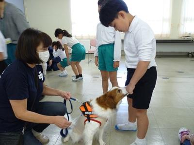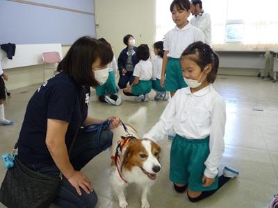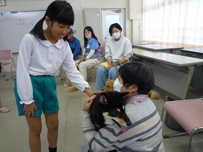 いしかわ動物愛護センターの方とボランティアの方々に来ていただき、「子どもと犬のふれあい教室」が開かれました。実際に犬をさわったり、犬の心臓の音を聞いたりしました。「ふわふわであったかかった」「犬と人間の心臓のはやさがちがってびっくりした」など犬とふれ合って分かったことがたくさんあったようです。貴重な体験ができて子ども達はいい笑顔でした。