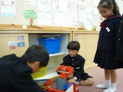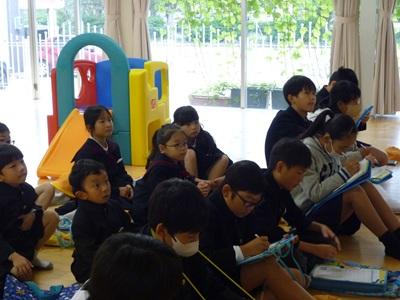 1年生と6年生で子育て支援センター「カンガルーム」へ見学に行きました。1年生は生活科「町のすてき」の学習で、小さい子どもと保護者のための施設があることを学びました。小さい時に利用していた人は、懐かしいおもちゃを見つけ嬉しそうでした。6年生は総合「12才のハローワーク」の学習で、仕事について学びました。その後、近くの遊歩道へ行き、1年生が秋のおもちゃ作りで使うどんぐりや落ち葉を拾いました。6年生が一緒に探してくれ、とても優しく声をかけていて素敵でした。