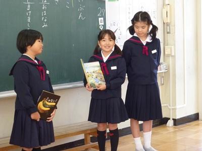 国語「おすすめの一冊を決めよう」の学習をしました。1年生が本を好きになってくれるような楽しい本を選び、3年生みんなで話し合い、おすすめの一冊を紹介に行きました。1年生が嬉しそうに紹介した本を手にとってくれて、3年生も満足そうでした。