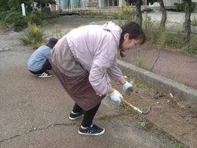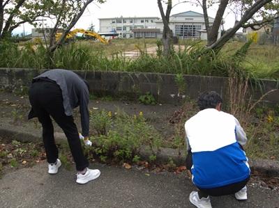 10/18(土)石川県立あすなろ中学校の皆さんがバス遠足の折に西荒屋小学校にいらっしゃいました。そして復興途中の内灘町や西荒屋小の現状を思い、自分たちにできることとして、西荒屋小学校のグランド周りの除草作業を行って下さいました。当日は風が強くかなり蒸し暑い日だったのですが、皆さんのおかげで、歩道がすっきりと歩きやすくなりました。温かいお心に感謝です。本当にありがとうございました。