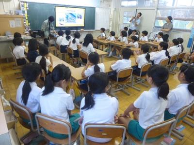 環境教育の一環として、北陸農政局の方に河北潟や放水路防潮水門についてお話していただきました。子ども達は水門の役割等についてしっかり話を聞いて学んでいました。今日のお話を聞いて、今月25日の防潮水門見学が、さらに楽しみになったようでした。