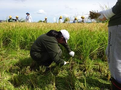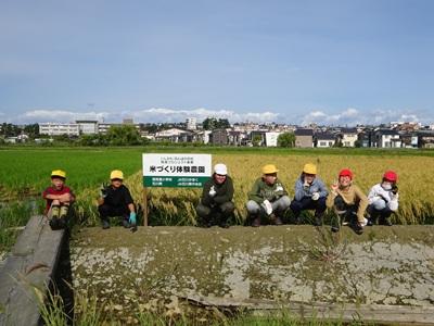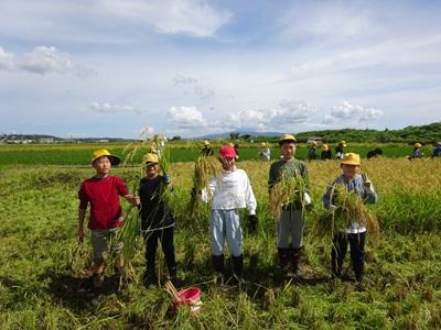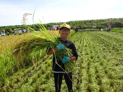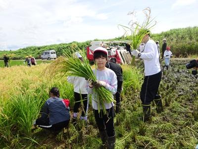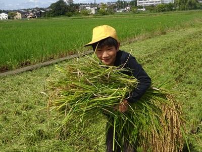 5月に植えた苗が大きく成長し、たくさんのお米が実りました。ここまで育てて下さった髙道さんに感謝です。月曜日にみんなで稲刈り体験をしました。前日の雨で田んぼがぬかるむ中、一生懸命稲を刈る姿がすてきでした。