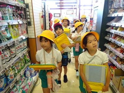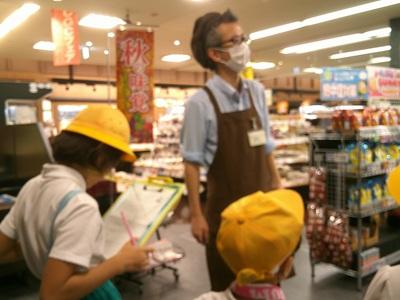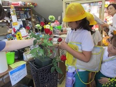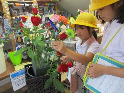 1.2年生 生活科、3年生 社会の学習で、マルエーに見学に行きました。3つのグループに分かれ、それぞれマルエーのスーパー、お花屋さん、ここの音さんのお店を見学しました。普段見ることができないバックヤードを見せていただいたり、お花を生けさせていただいたり、たい焼きなどの作り方を教えていただいたりしました。子ども達の質問にも答えていただきました。子ども達は初めて知ることばかりで、とても驚いていました。貴重な経験をさせていただきありがとうございました。