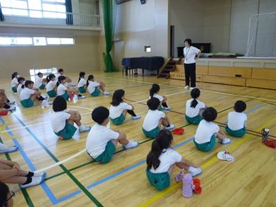 パスやシュート等基本的な動作について教えていただき、みんなで楽しみながら練習しました。