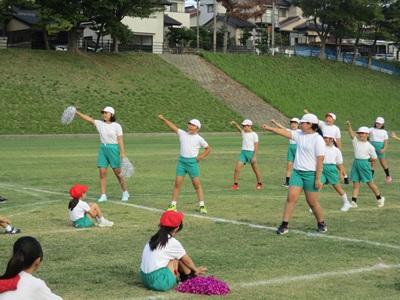 1~3年生は元気いっぱいのよさこいを、4~6年生は一糸乱れぬフラッグの演技を披露しました。