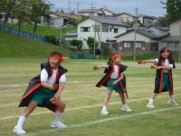今週の土曜日はいよいよ運動会です。子ども達は本番に向けて、真剣に頑張っています。今日は開会式と応援合戦、なかよし斑障害物リレーの練習を行いました。応援合戦は全力で、障害物リレーの練習はペアで力を合わせて頑張っていました。本番が楽しみです。
