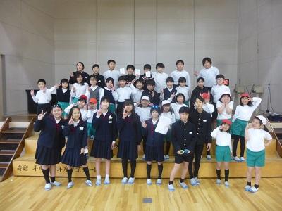 3月の全校集会は元気いっぱいの校歌で始まりました。その後、表彰伝達(①町スピーチフェスティバル、②調べる学習コンクール、③表現力の達人)を行い、続いて校長先生の話「どれだけ成長したかな」、学習目標の話「次の学年につなげよう」を聴きました。児童会タイムでは、健康委員会より「元気に過ごすコツ」の発表とエクササイズ「エビカニクス」の紹介がありました。皆で楽しく体を動かし、体も心もポカポカになりました。