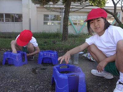 生活科「わたしのはなをそだてよう」の学習で、あさがおの種をまきました。指先で土に穴をあけ種を入れると、やさしくそっと土のおふとんをかけてあげました。早く芽が出てほしいとわくわくしていました。これから毎日水やりをして、大切に育てていきたいですね。