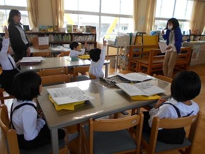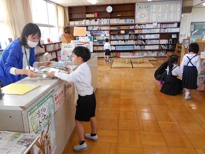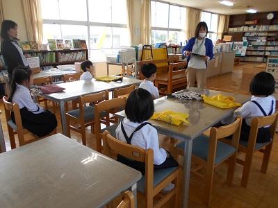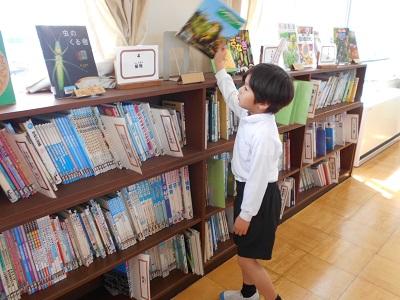 初めて図書館へ行き、司書の大久保先生に本の借り方・返し方や図書館のきまりなどを教えていただきました。「本は心の栄養」とも言われます。たくさん読んでくださいね!