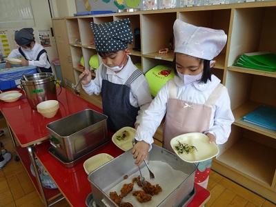 1年生は、はじめての遊具遊び、はじめての給食と、たくさんの「はじめて」がありました。遊具遊びでは、高いジャングルジムにドキドキしながら登り、みんな嬉しそうでした。給食では上手に盛り付けし、順調に準備ができました。これからもいっぱい遊び、モリモリ食べて、元気いっぱいに過ごしてほしいと願っています。