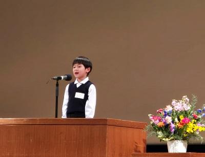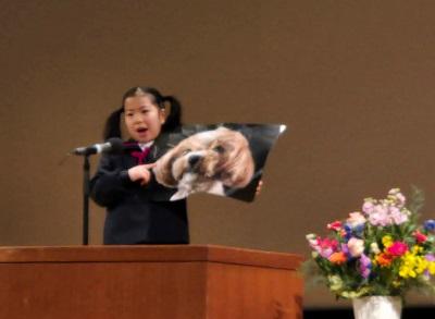内灘町のスピーチフェスティバルに1年生の2人が参加しました。「大好きな犬」や「夏の思い出」について英語で上手にお話ができました。本番までにお家や学校で何度も練習をして、本当によくがんばりました。