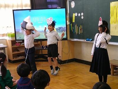 1.2年生が合同で「年長さんをむかえる会」を行いました。劇や折り紙のプレゼント、なわとびや九九の発表など、小学校でするお勉強の紹介をしました。学校探検で手をつないで教室を案内しました。4月に1年生として入学してくれるのが楽しみですね。