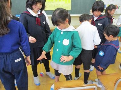 生活科「むかしからのあそびをたのしもう」の学習で、他学年と一緒にむかしからの遊びを楽しみました。けん玉対決、おはじき対決をして盛り上がりました。あそびを通して他学年との仲を深めることができました。