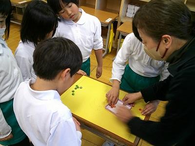全国珠算教育連盟から長澤先生に来ていただき、そろばんを教えていただきました。そろばんの持ち方や珠のはじき方、たし算やひき算の仕方を教えていただきました。みんなだんだん慣れてきて、そろばんを使ったたし算やひき算もできるようになりました。「もっとやりたい」「そろばんを使ったら計算がはやくなりそう」などの声が聞かれ、大変有意義な時間となりました。長澤先生、ありがとうございました。