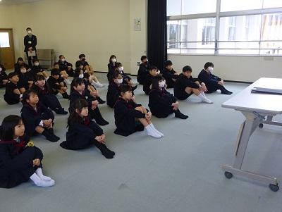 3月の全校集会は元気いっぱいの校歌で始まりました。その後、表彰伝達(①町スピーチフェスティバル、②調べる学習コンクール、③表現力の達人)を行い、続いて校長先生の話「どれだけ成長したかな」、学習目標の話「次の学年につなげよう」を聴きました。児童会タイムでは、健康委員会より「元気に過ごすコツ」の発表とエクササイズ「エビカニクス」の紹介がありました。皆で楽しく体を動かし、体も心もポカポカになりました。