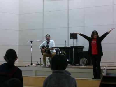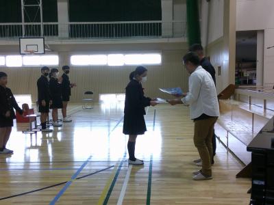 卒業のお祝いに,シンガーソングライターの森 源太さんと災害支援ボランティアONE TEAMの方々が来校され,賞状と歌のプレゼントをいただきました。心のこもった温かいご厚意に感謝申し上げます。本当にありがとうございました。