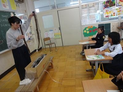 全国珠算教育連盟から長澤先生に来ていただき、そろばんを教えていただきました。そろばんの持ち方や珠のはじき方、たし算やひき算の仕方を教えていただきました。みんなだんだん慣れてきて、そろばんを使ったたし算やひき算もできるようになりました。「もっとやりたい」「そろばんを使ったら計算がはやくなりそう」などの声が聞かれ、大変有意義な時間となりました。長澤先生、ありがとうございました。