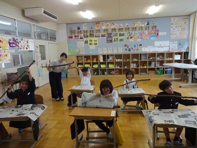 生活科「むかしからのあそびをたのしもう」の学習で、他学年と一緒にむかしからの遊びを楽しみました。けん玉対決、おはじき対決をして盛り上がりました。あそびを通して他学年との仲を深めることができました。