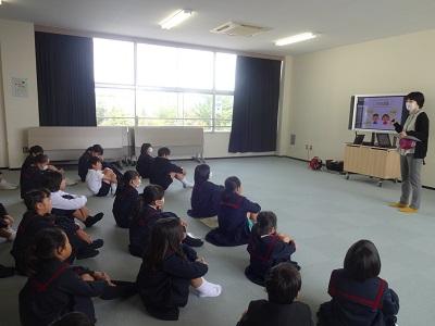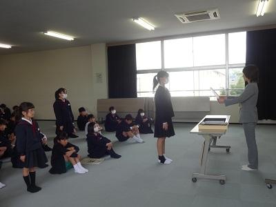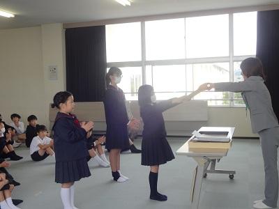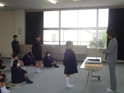 11/1(金)1限目の全校集会の内容は、①表彰伝達、②校長先生の話「思いの力~夢は努力を続けて叶えるもの~」、③生活目標の話「プラス言葉をふやそう」、➃学習目標の話「自分の考えを分かりやすく書こう」でした。