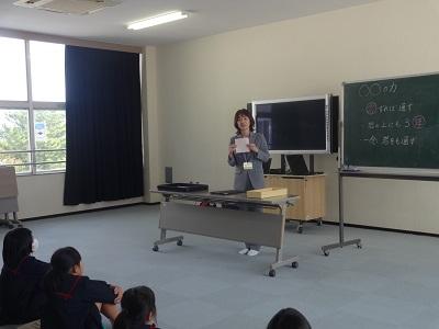 全国珠算教育連盟から長澤先生に来ていただき、そろばんを教えていただきました。そろばんの持ち方や珠のはじき方、たし算やひき算の仕方を教えていただきました。みんなだんだん慣れてきて、そろばんを使ったたし算やひき算もできるようになりました。「もっとやりたい」「そろばんを使ったら計算がはやくなりそう」などの声が聞かれ、大変有意義な時間となりました。長澤先生、ありがとうございました。