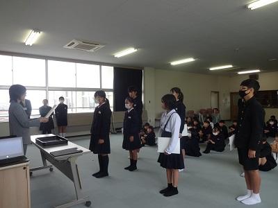 続いて行われた児童集会では、新しく任命された後期各委員長と学級代表から力強い決意の言葉を聞くことができました。よりよい西荒屋小をつくるため、皆で協力していきましょう!