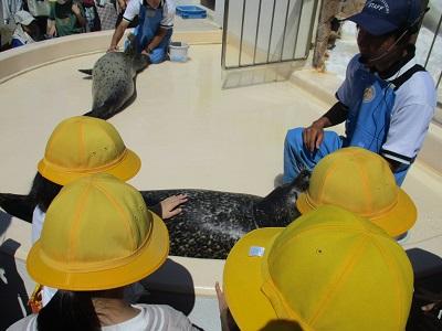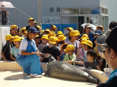 全校児童で越前松島水族館へ行ってきました。貸切バスを使って県外まで行くのは初めての経験です。昨年度より、復興支援としていただいた義援金で、今回のバス遠足を実現することができました。多くの方々に支えていただいていることに心より感謝いたします。本当にありがとうございます。