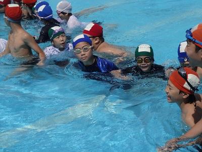 運営委員の進行で、プール集会を開催しました。ゲームで得点を競ったり、全員で水の流れをつくったりして、みんなで楽しい時間をすごすことができました。運営委員のみなさんありがとうございました。
