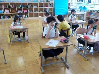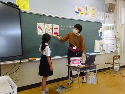 学活で「むし歯をふせぐみがき方」について養護教諭の山﨑先生からお話をしていただきました。歯垢がたまりやすい場所やきれいに歯をみがくコツを教えてもらい、実際に歯をみがきました。今日教えてもらったことをいかして、お家でも1本1本丁寧に磨いてくださいね。