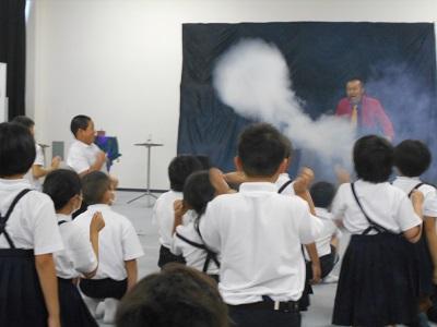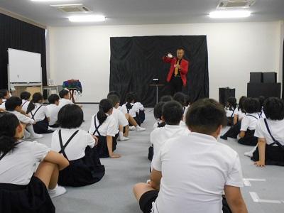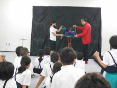 6/24(月)プロマジシャンのマジシャンルパンこと、高田隆二さんにご来校いただき、全校児童でマジックショーを鑑賞しました。目の前で披露される数々のマジックに子ども達は大喜び!「どうして?」「不思議!」と目を真ん丸にして、ルパンさんの動きに釘付けです。最後の巨大空気砲では、大歓声が上がりました。本当に楽しい時間をありがとうございました!