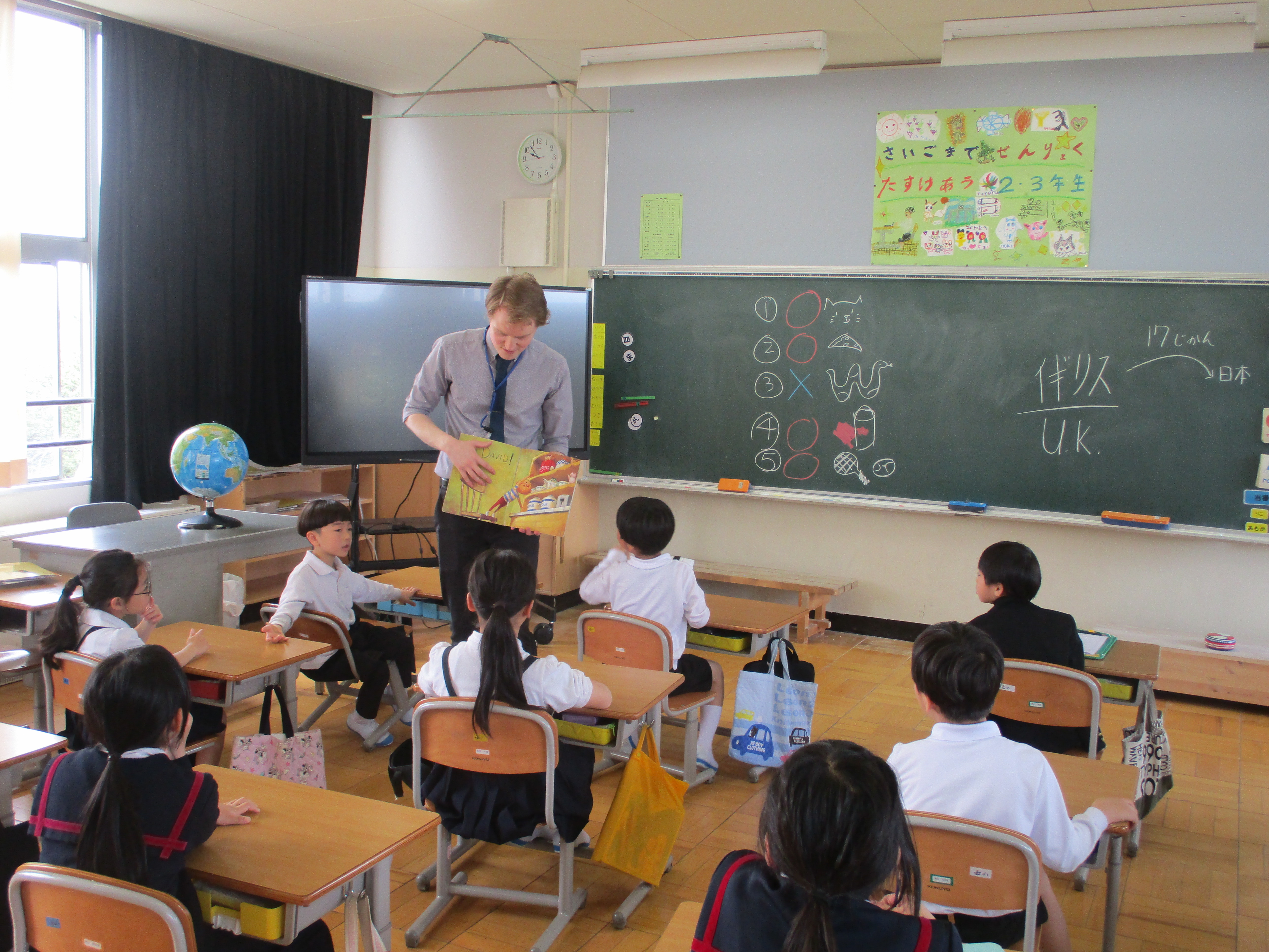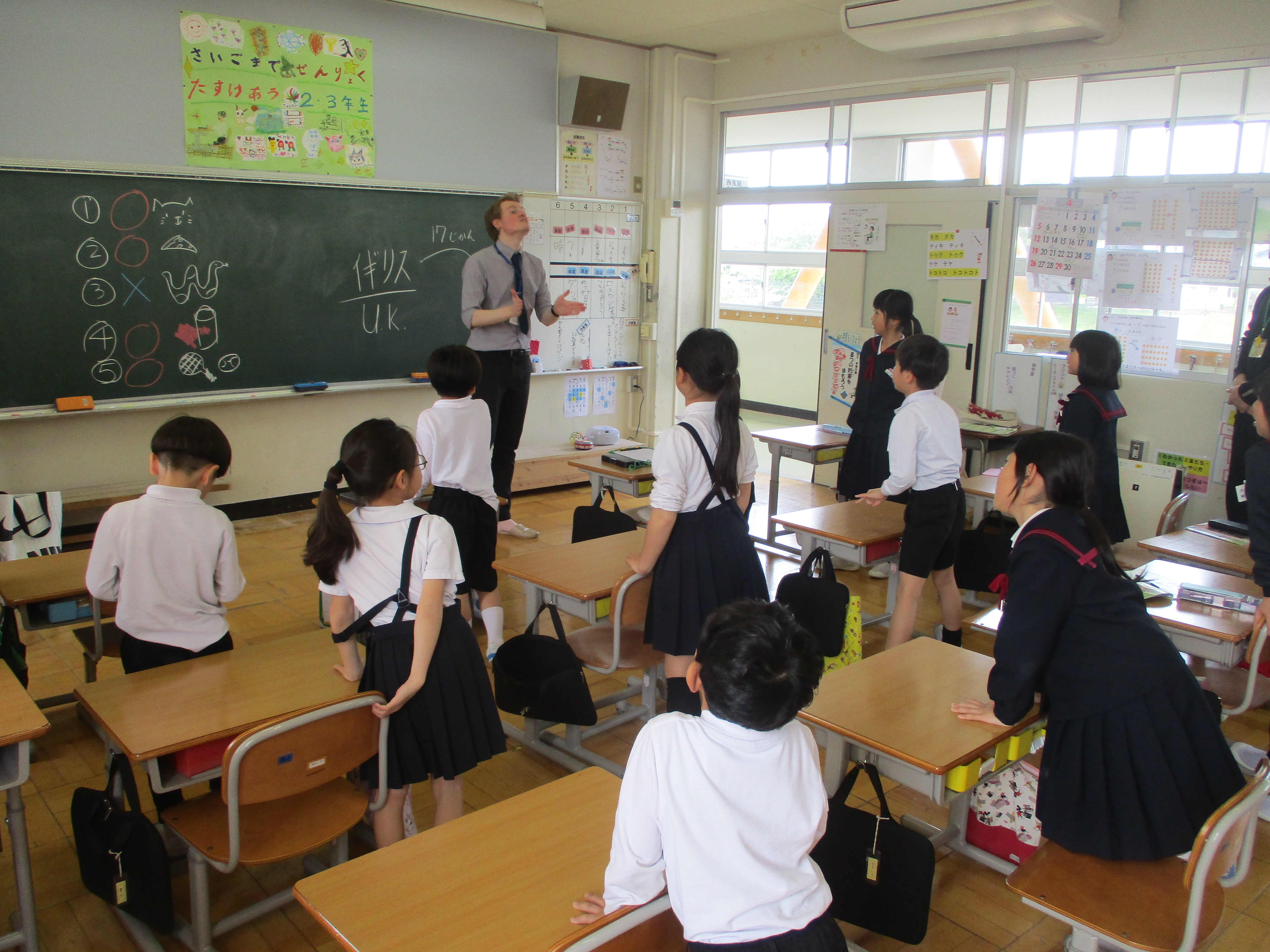 2026年4月28日 10時09分低学年の外国語活動では、自分の名前を言う活動を行いました。